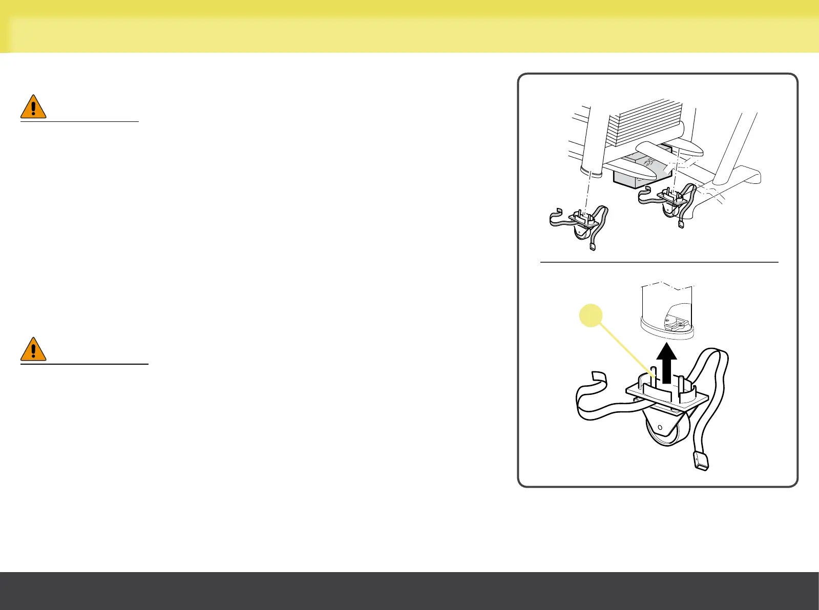 The wheels for moving the equipment snap on underneath the feet of the