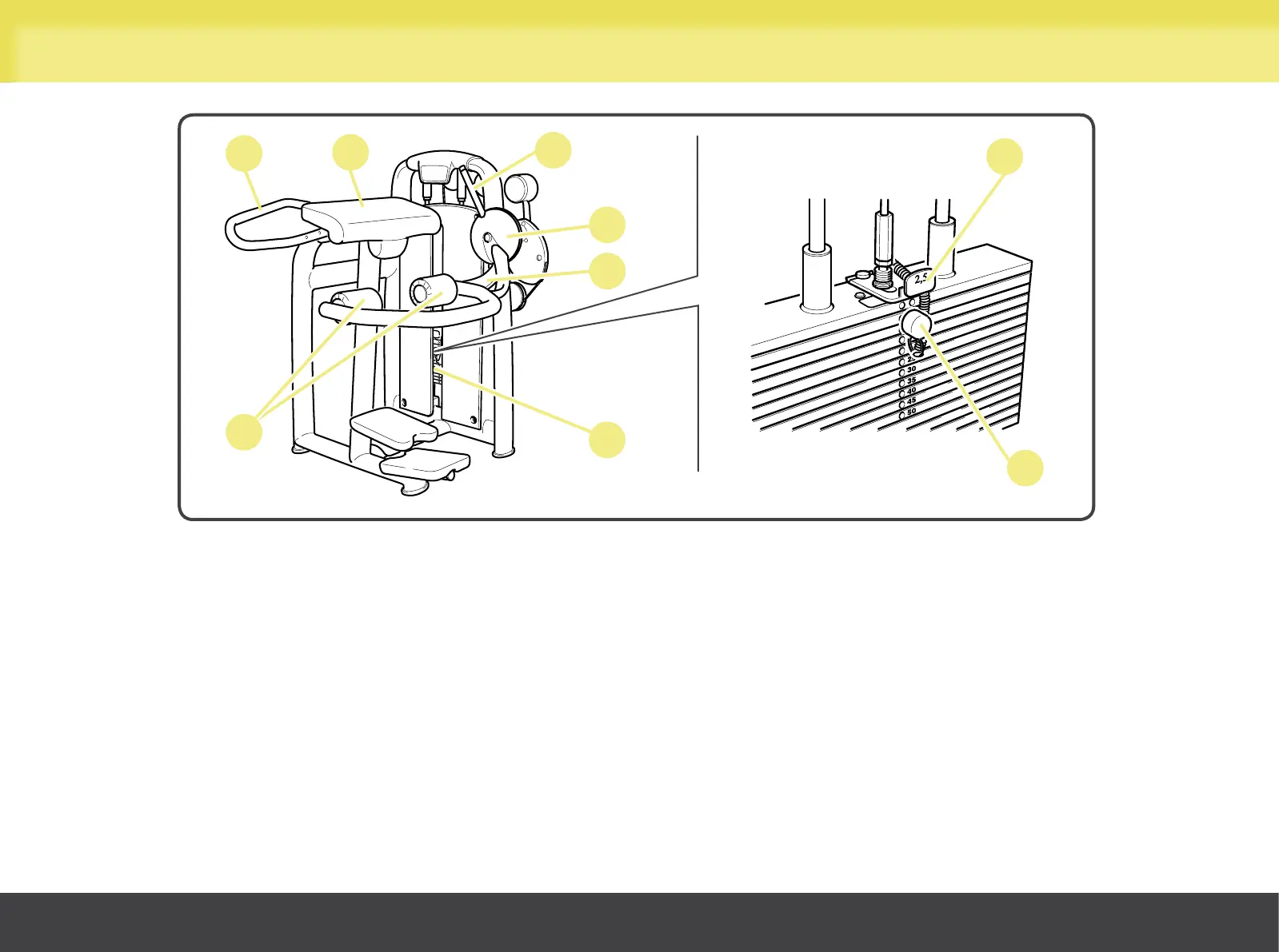I Front handgrip: the user must hold it to ensure a correct position during exercises.