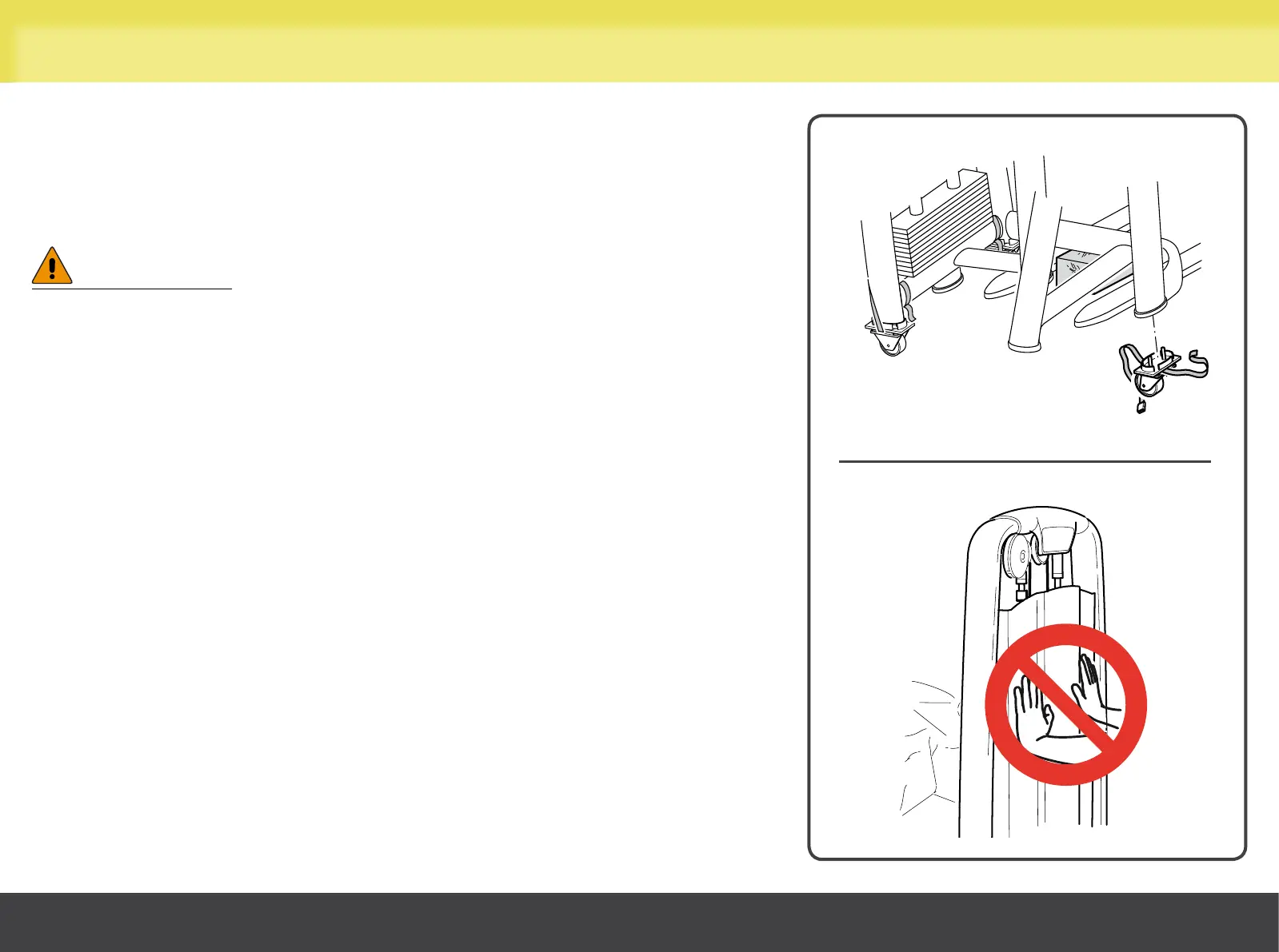 Lastly, lift the equipment again, remove the safety wedges and place the wheels