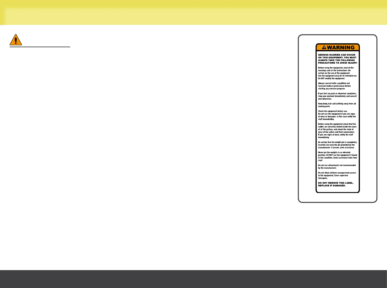 Attention must be paid to the labels attached to the equipment, as they provide