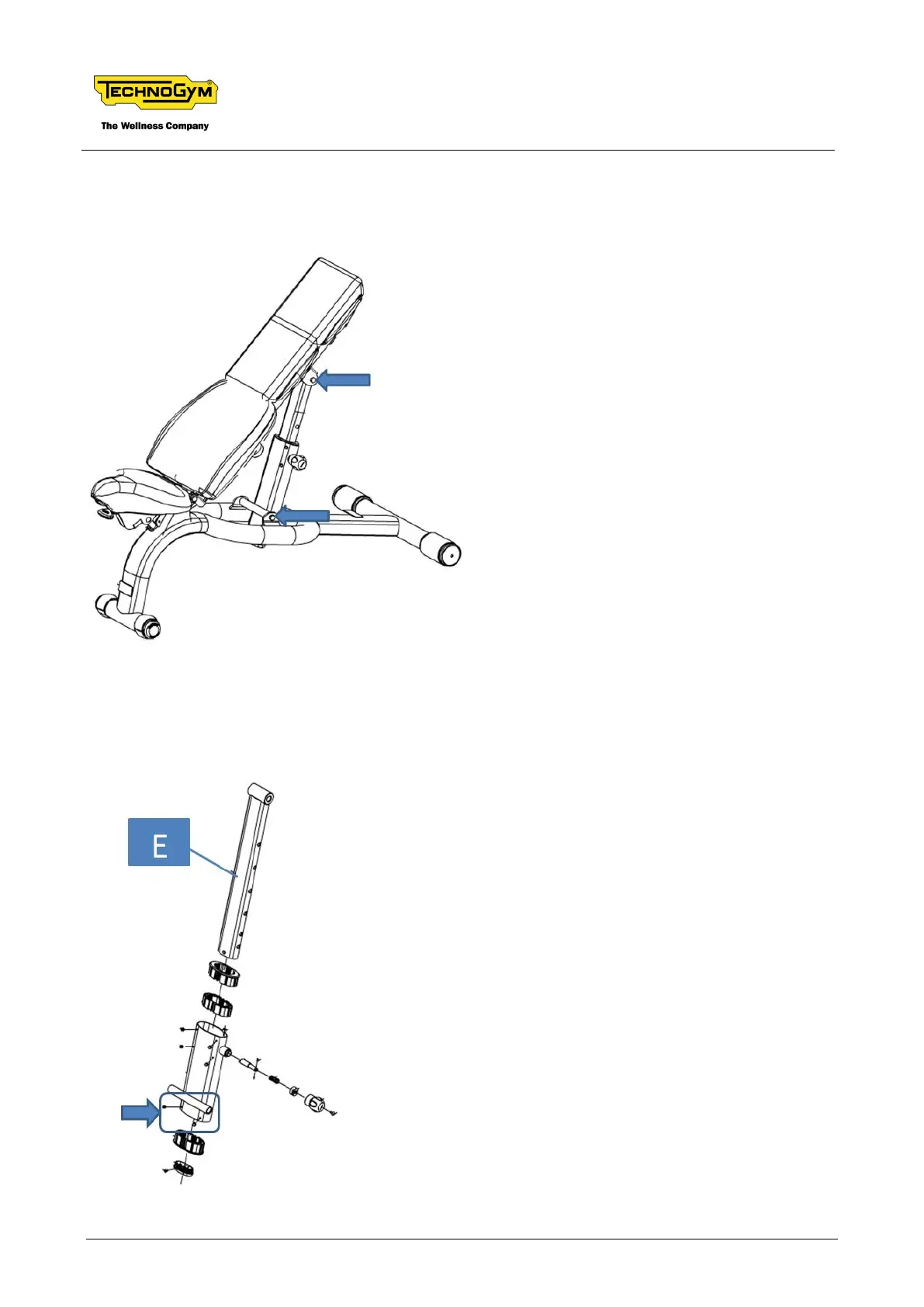 2-Remove the back adjustment (E). If necessary, remove the lower rivets (see arrow) before
