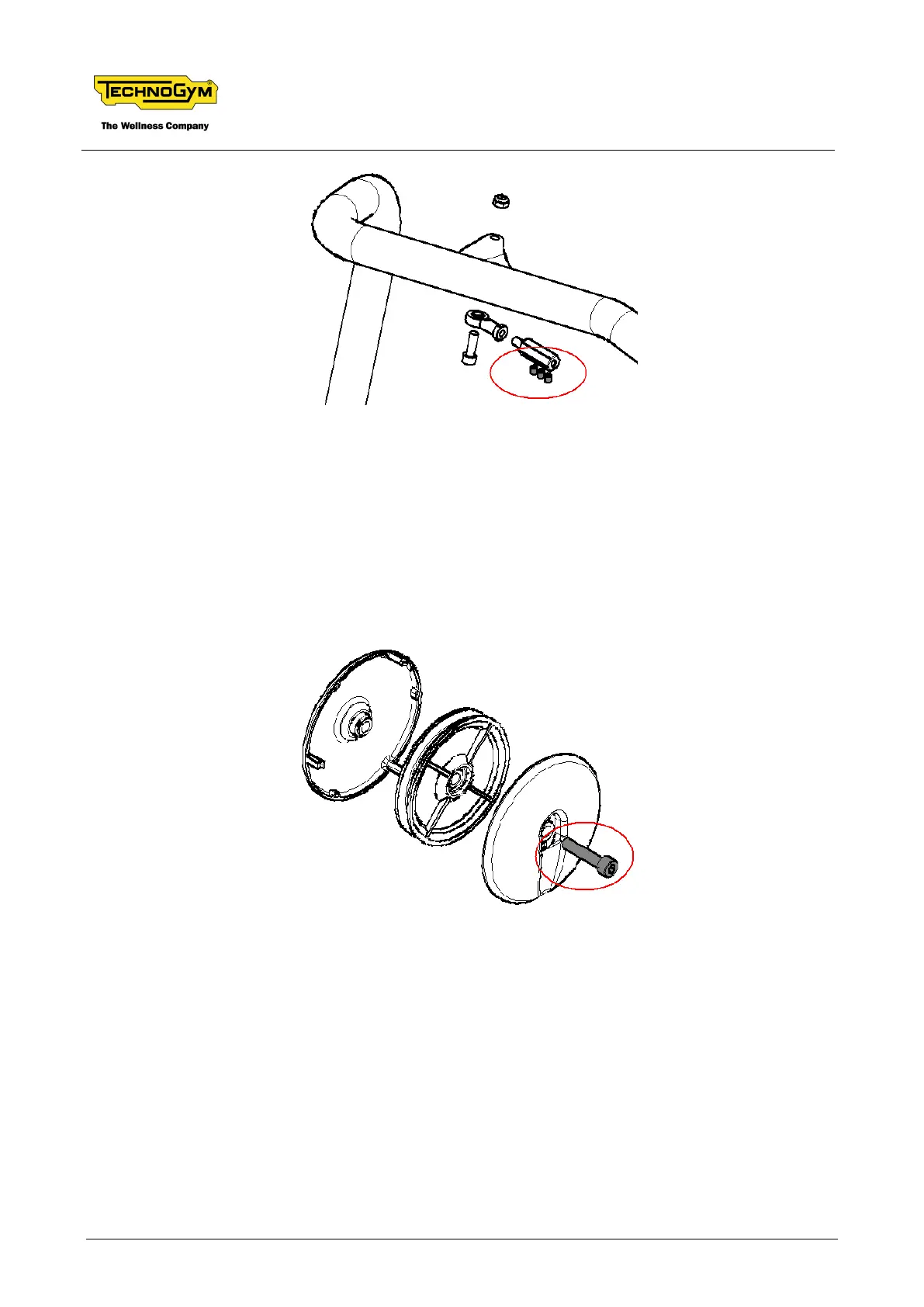 The screws of the pulleys, highlighted in grey and circled in the figure below, must be carefully