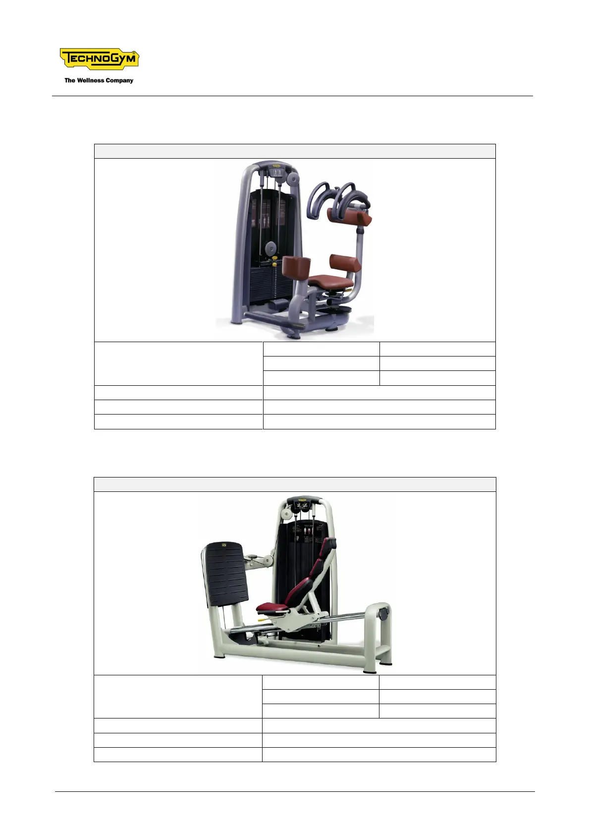 Technogym Selection M810 - M850; M950 - Rotary Torso; M851; M951 - Leg Press