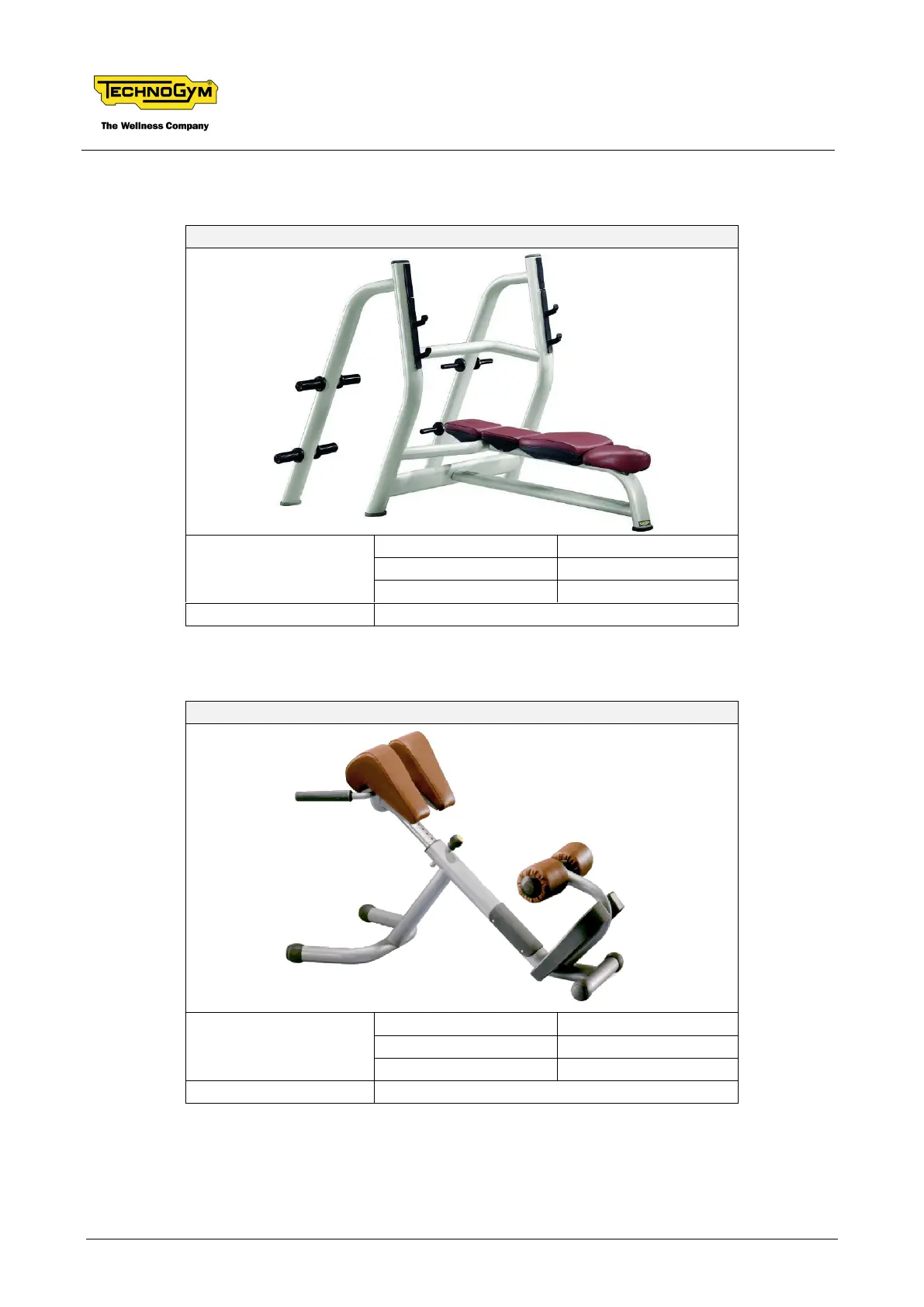 Technogym Selection M810 - P824; P924 - Olympic Bench Press; P825; P925 - Lower Back Bench