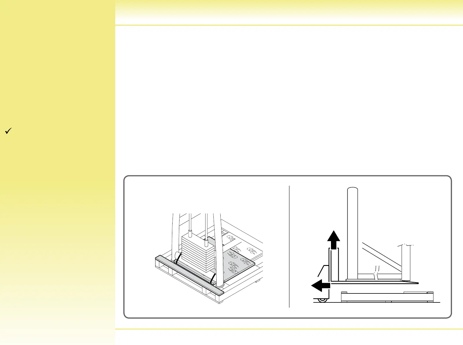 The equipment is supplied on a pallet, to which it is secured by means of straps.