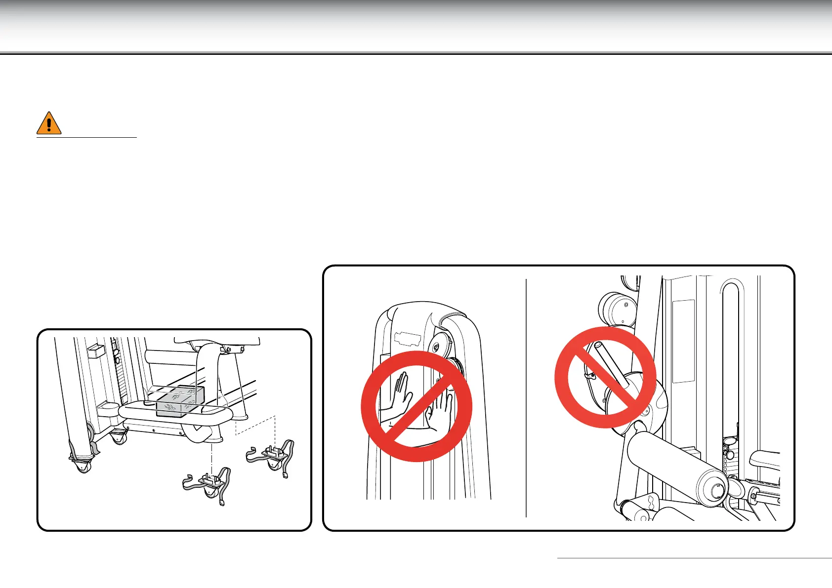 When moving the equipment, we recommend pushing it only from the weight stack side, and not from any other side.