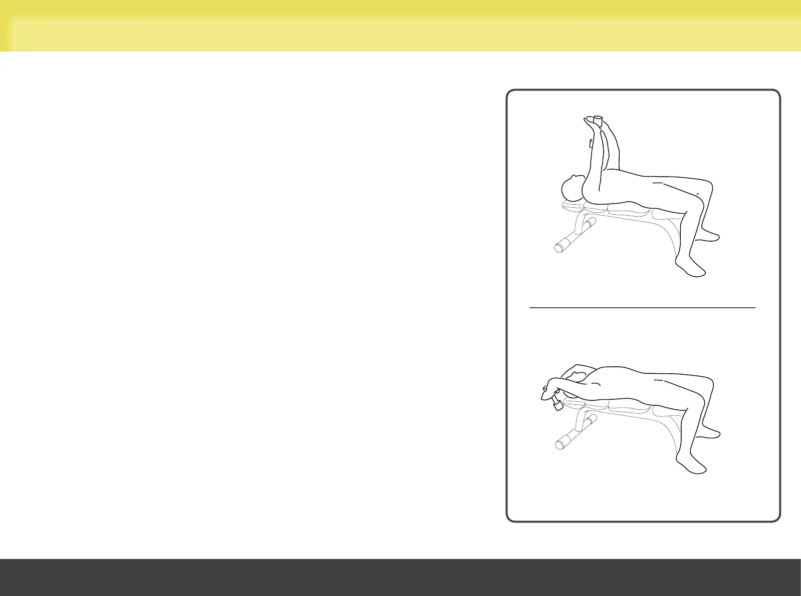 Take the dumbbell back behind your head while keeping your arms stretched;
