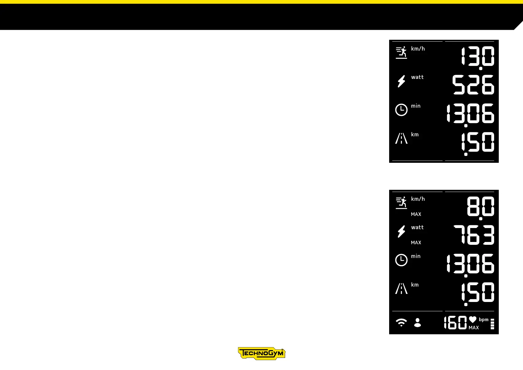 - Elapsed time (from the start of the exercise), expressed in minutes and seconds.