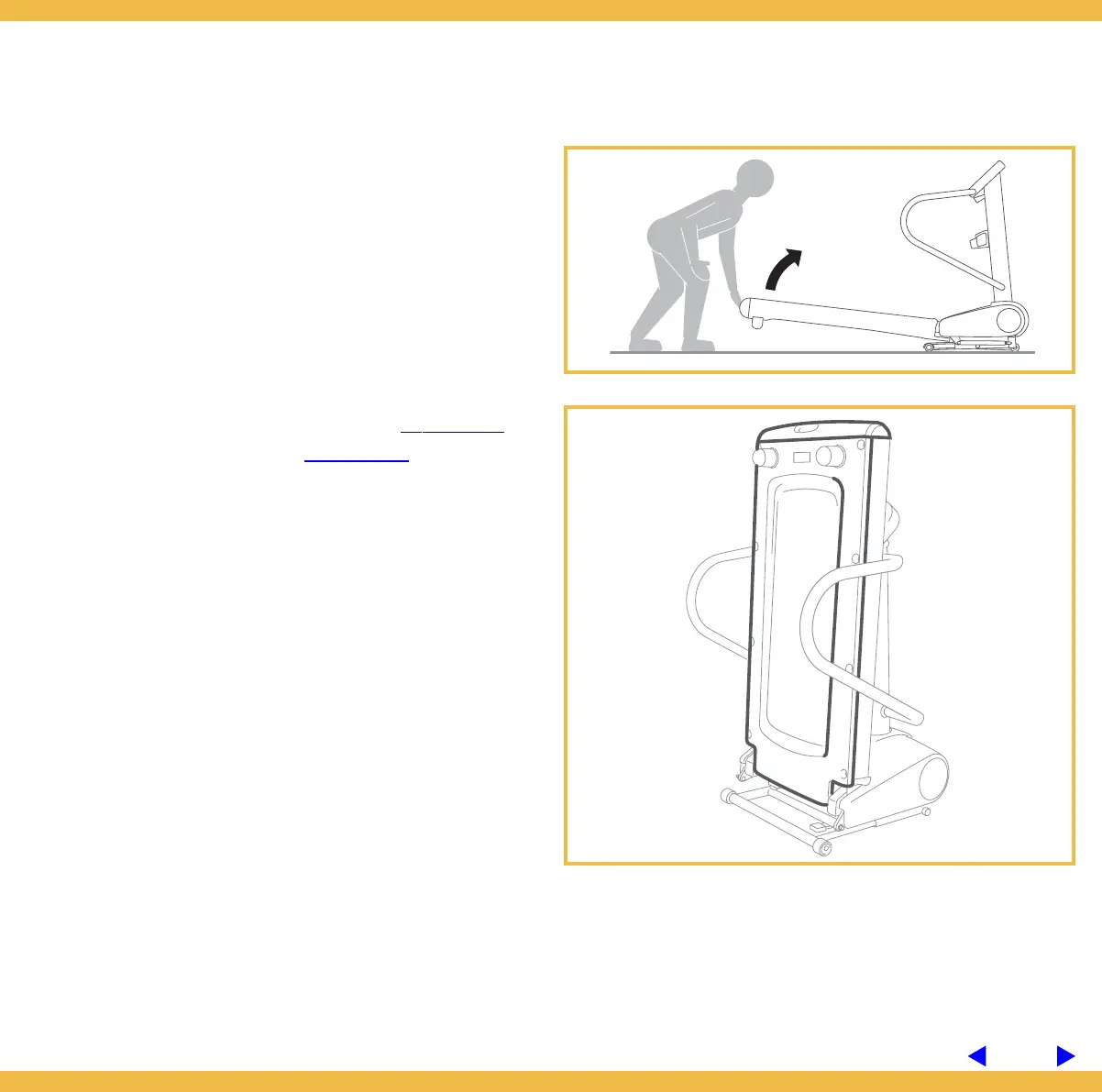 The equipment will lean downwards slightly; at this point grip the rear frame and fold up the belt, as shown in