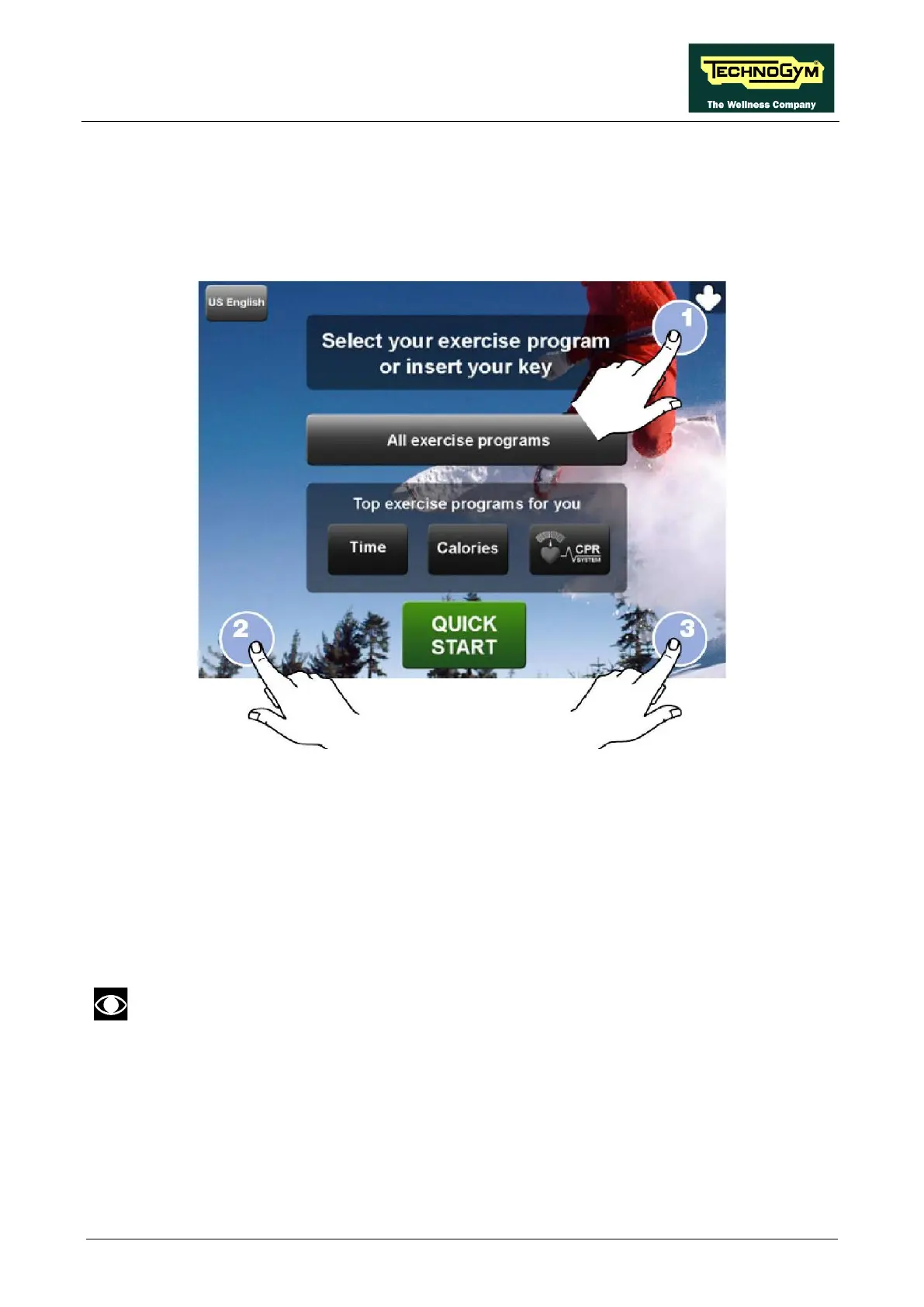without saving. In case of errors the initial Technogym settings can be restored using the