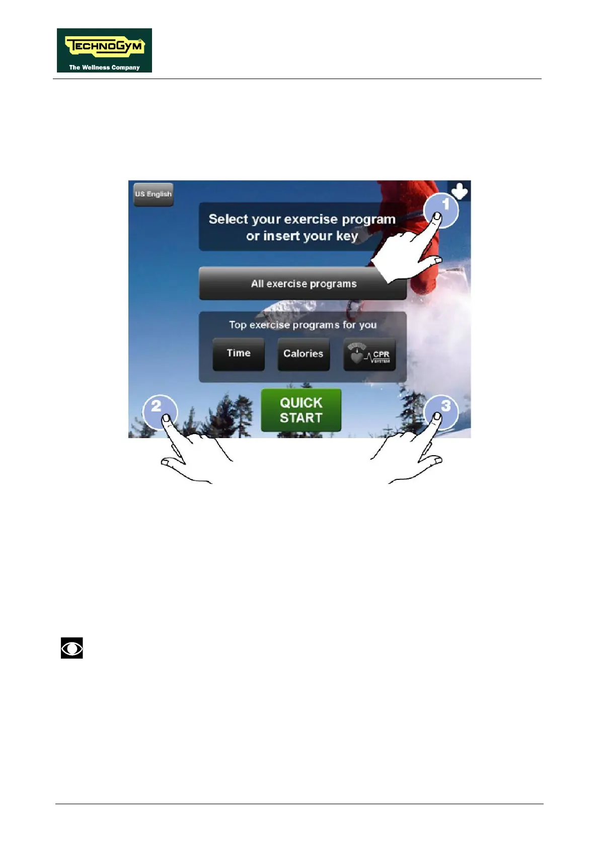 without saving. In case of errors the initial Technogym settings can be restored using the