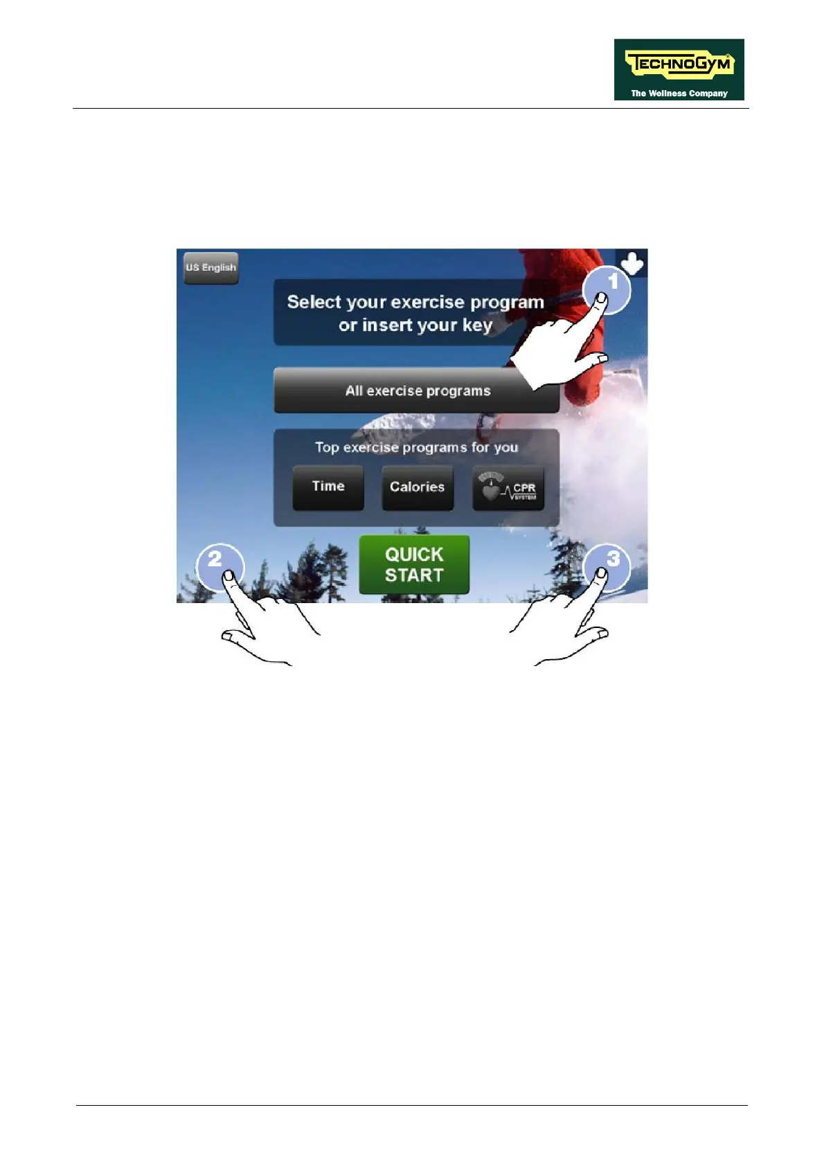 The machine display will shows a window from where you can access the different configuration
