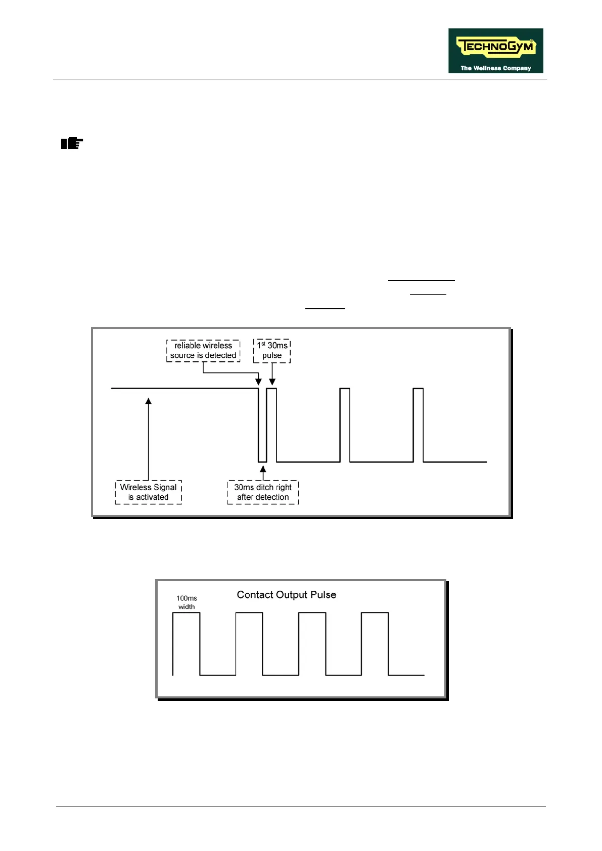 Board is in stand-by, the signal is +5Vdc; as soon the Board receives a reliable source of heart rate