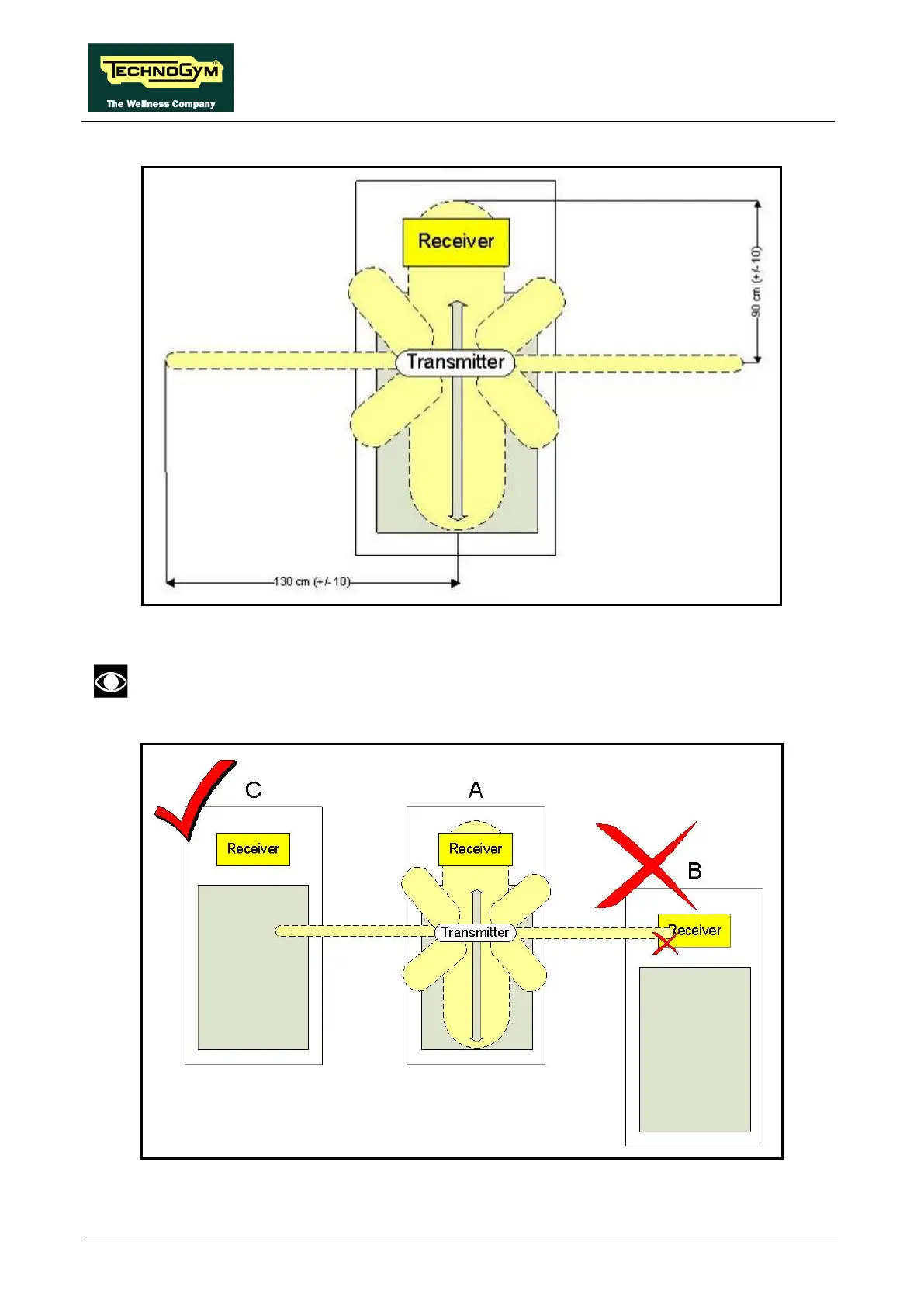 The active area of the transmitter is wider on the lateral side (130 cm) instead of the