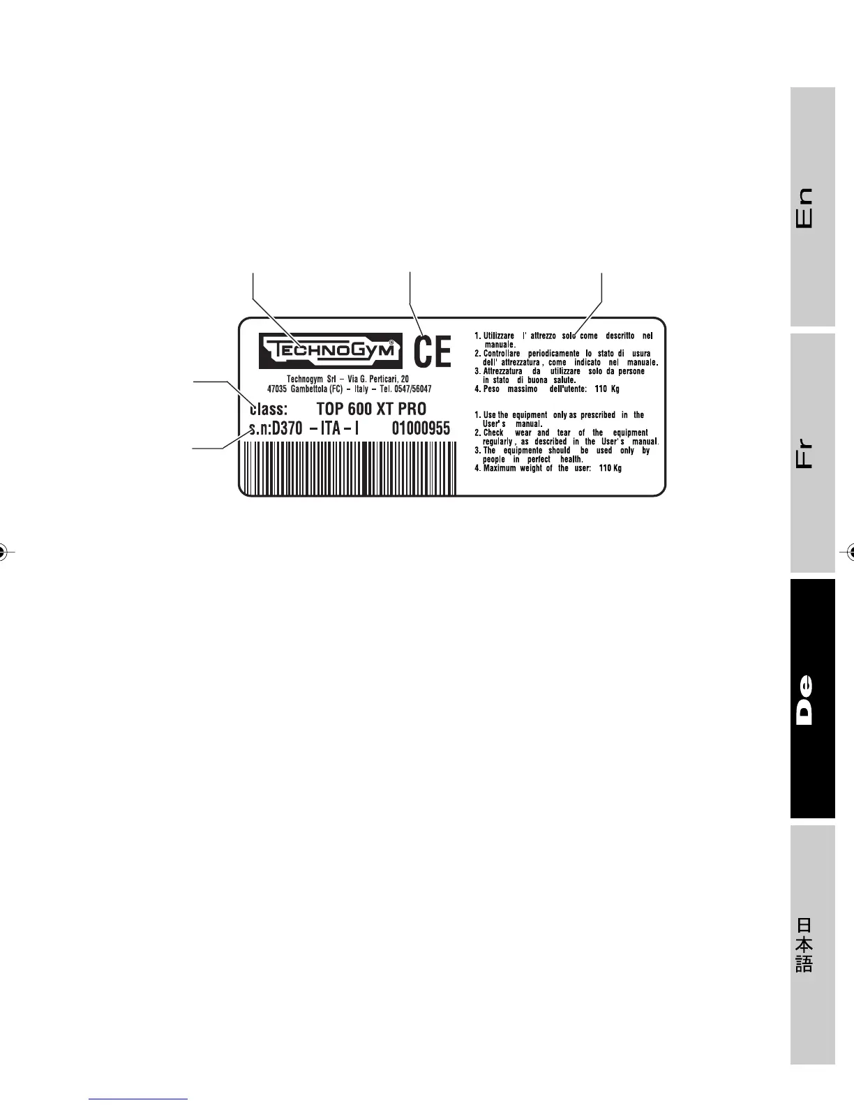 Technogym TOP 600 XT PRO - 1 Technische Informationen; Angaben zu Hersteller und Gerät