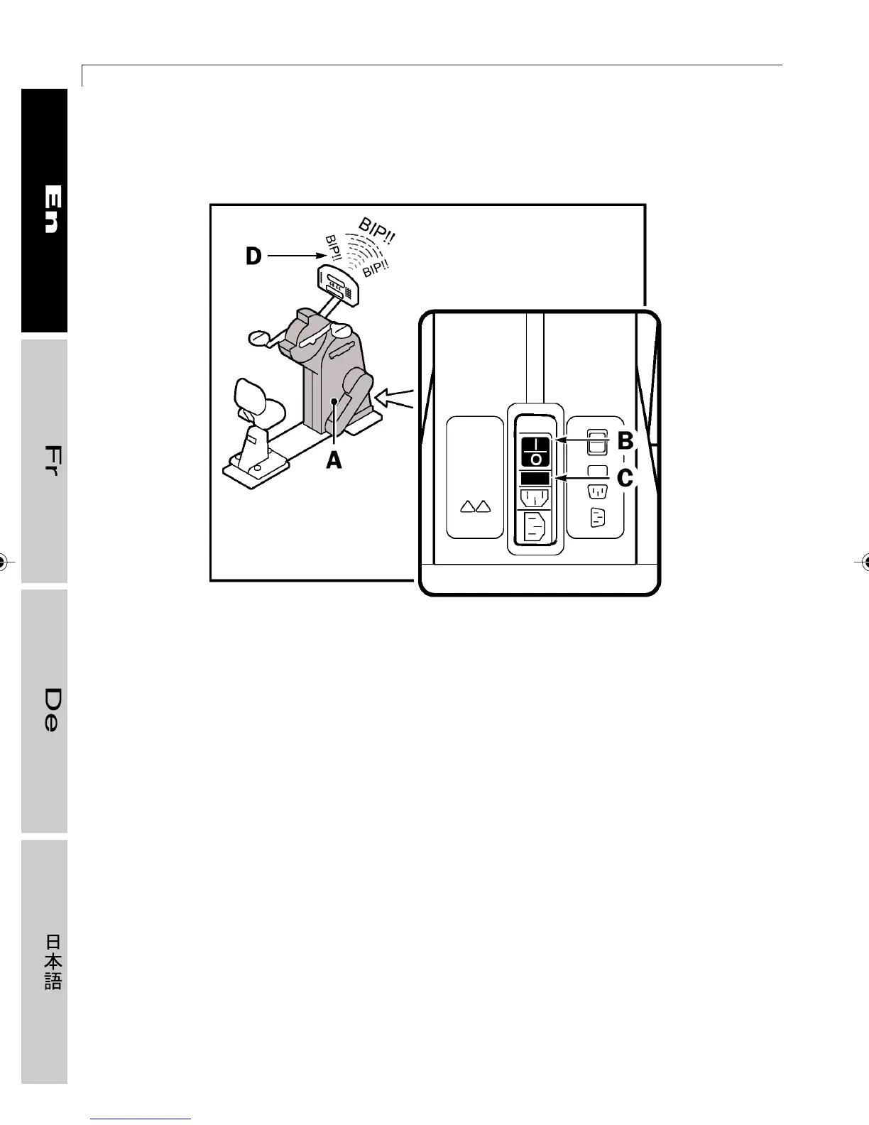 D Beep: a beep informs the user that the Top 600 is being turned on, an exercise session