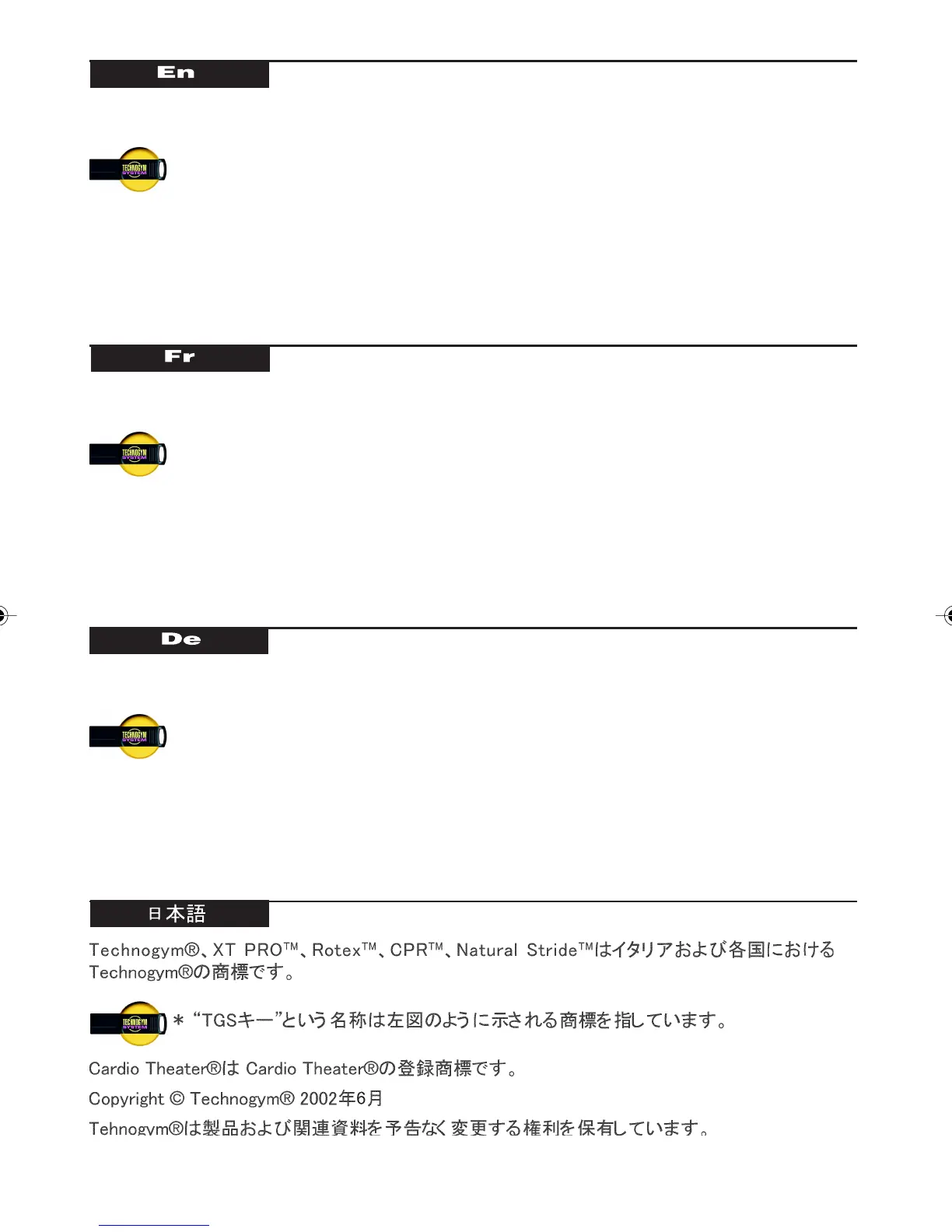 , XTPRO™, Rotex™, CPR™, Technogym System™, TGS™, Natural