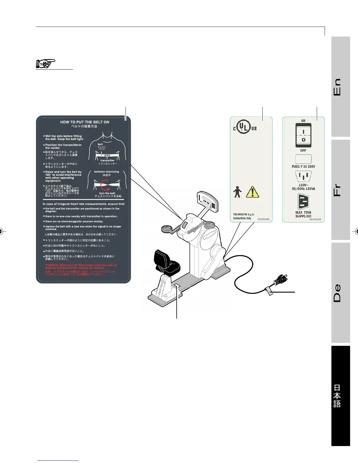 マシンに貼付された各ラベルにはリスクや危険性に関する警告が記載されています