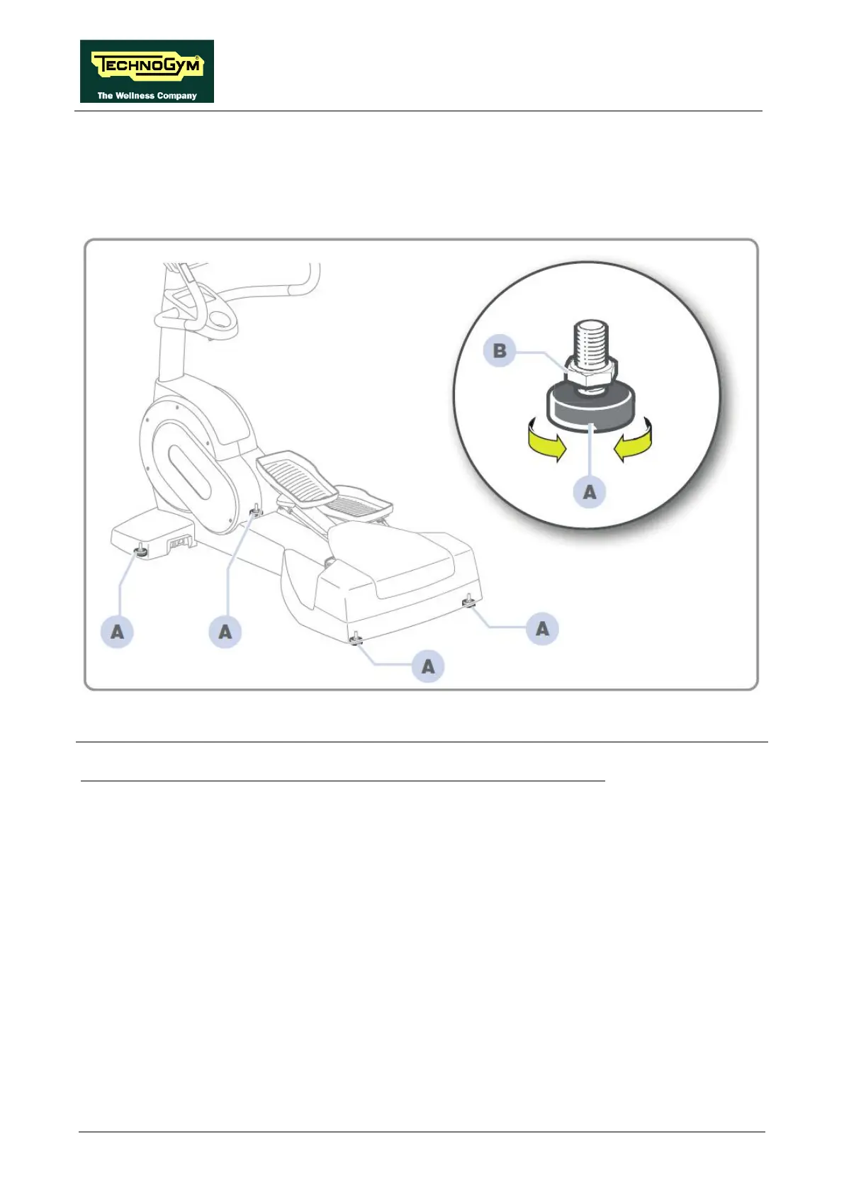 The equipment is levelled by adjusting the two front feet and the central foot: