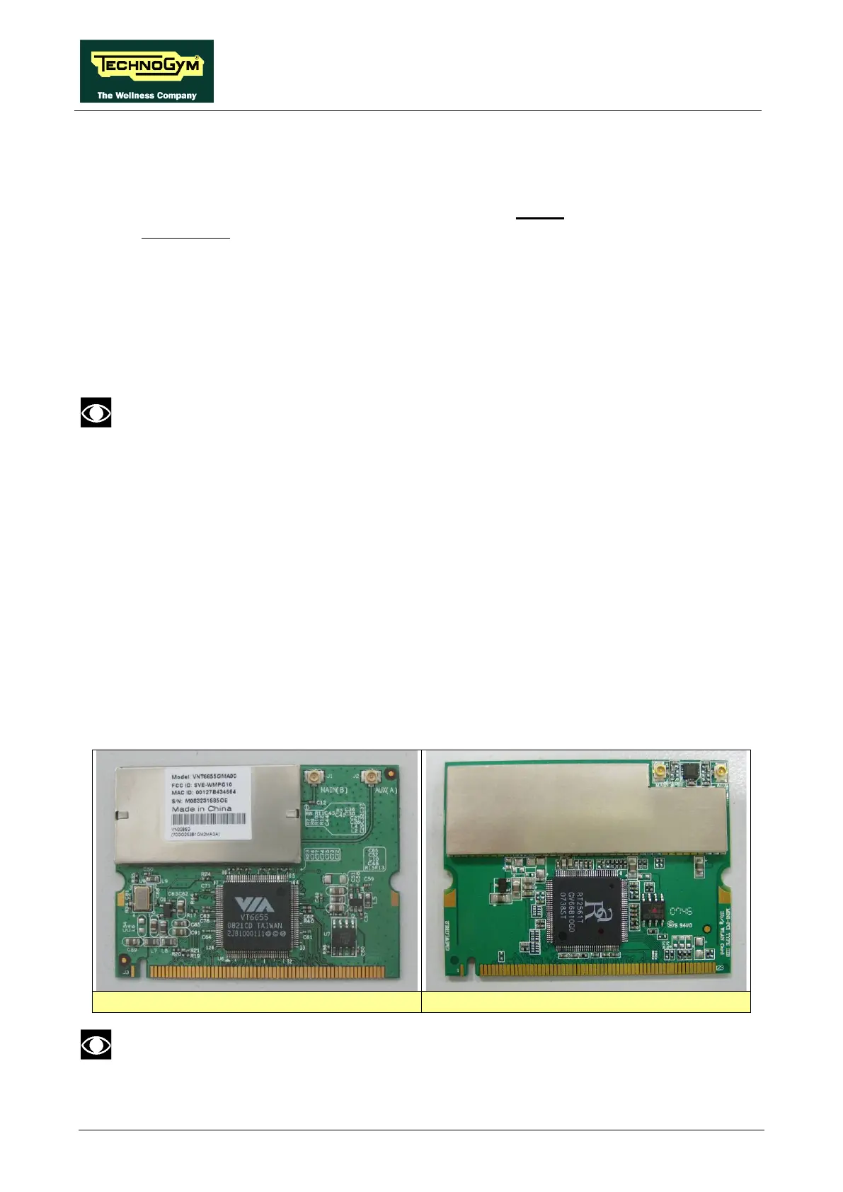 There are 2 different models of Wi-Fi network board used by Technogym, one produced by VIA and