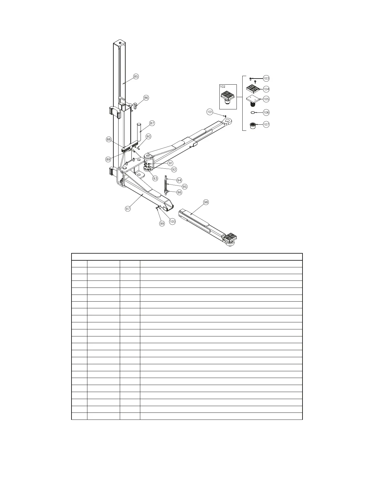 ITEM # PART # QTY/LIFT DESCRIPTION