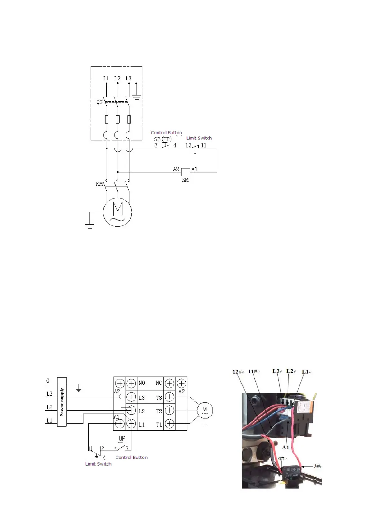 b. Terminals 4# of control button is connected with wire 12#(brown wire) of limit