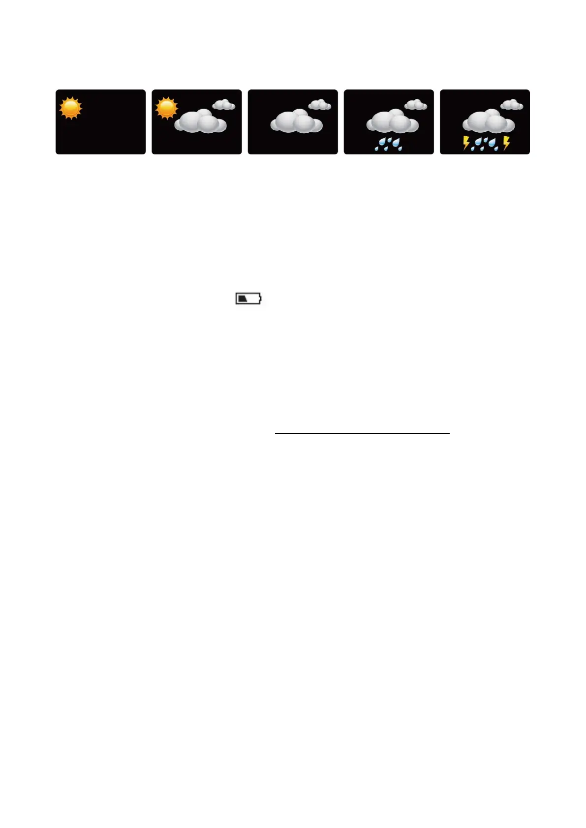 Wyświetlać może się 5 symboli prognozy pogody: słonecznie, częściowo słonecznie, zachmurzenie, deszcz,