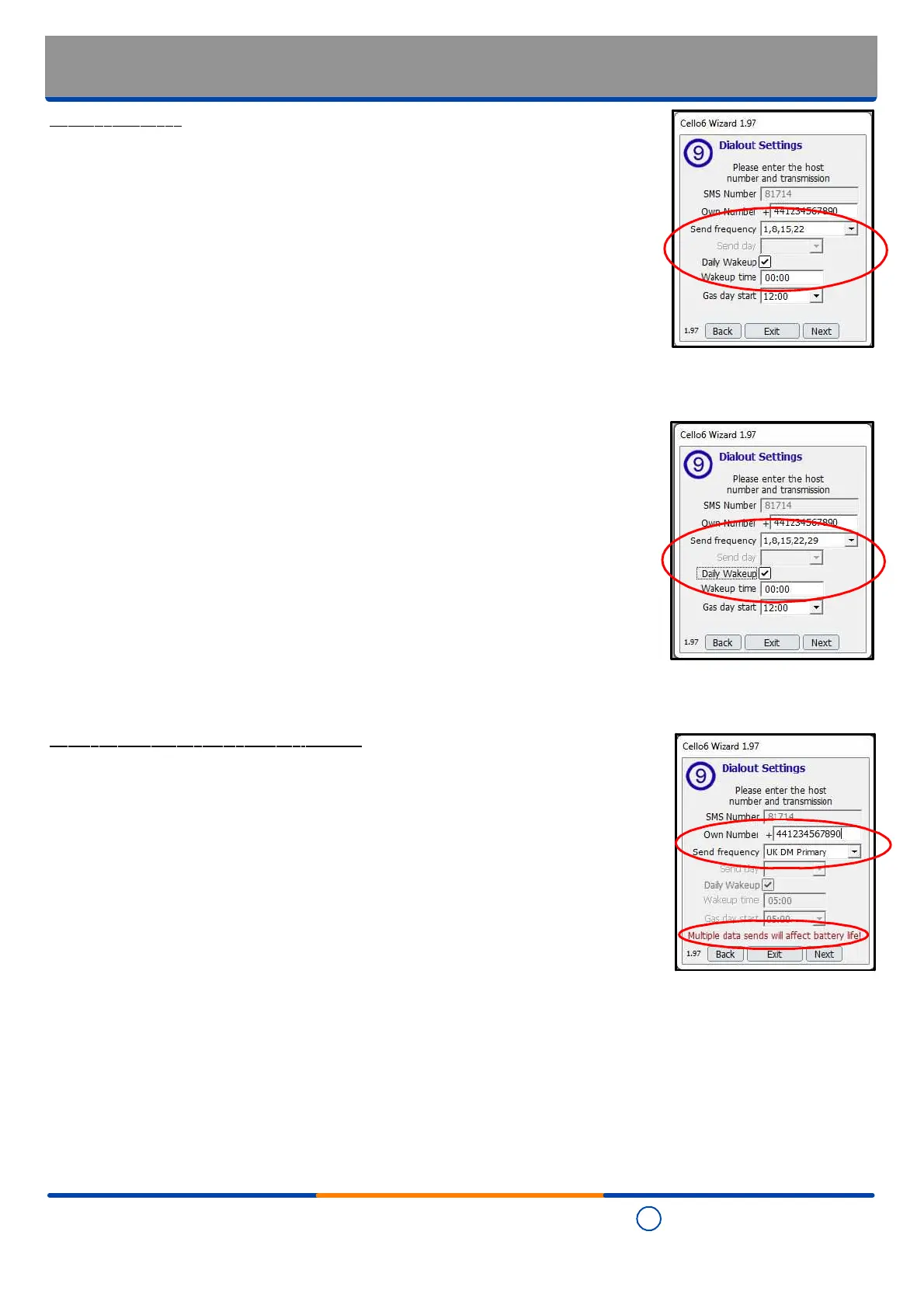 - Where the "Send frequency" is set as '1,8,15,22' then Cello 6S send its data on the 1st,