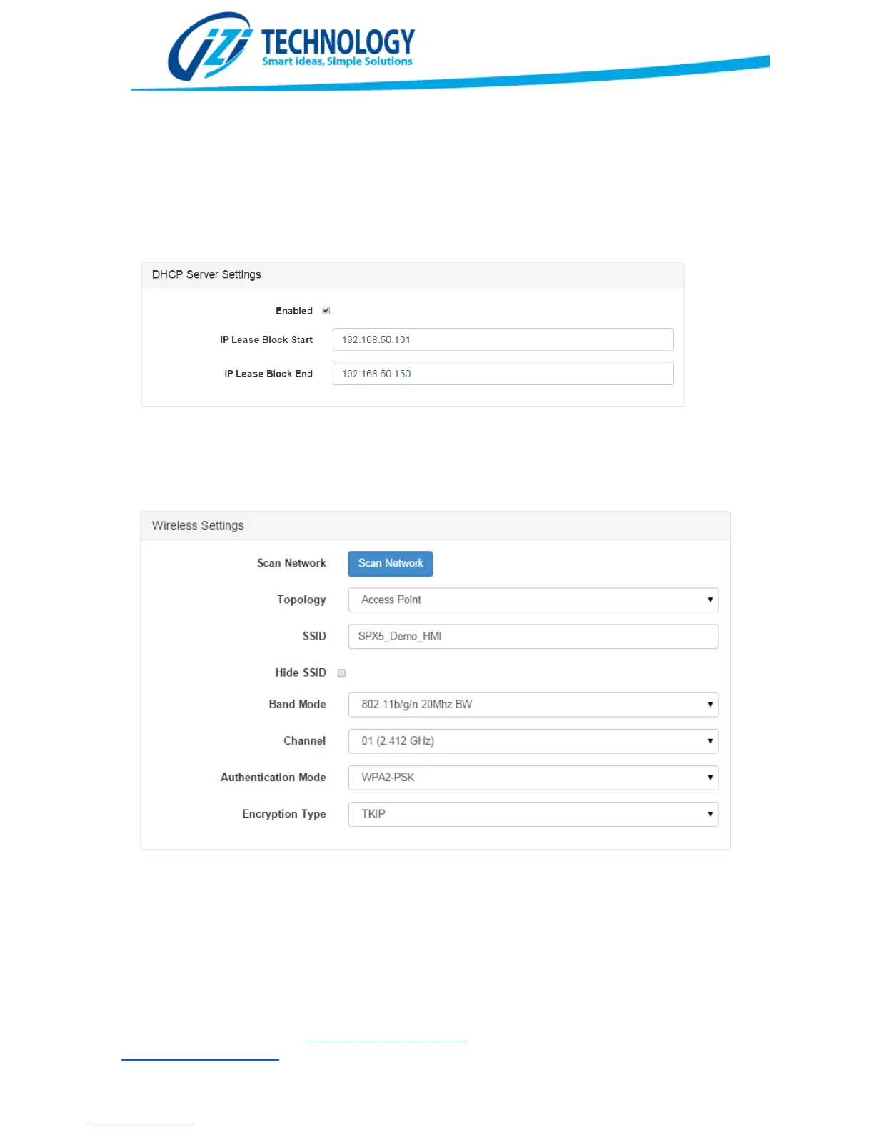 In the Wireless Settings section it is possible to configure all the WiFi settings. Based on the