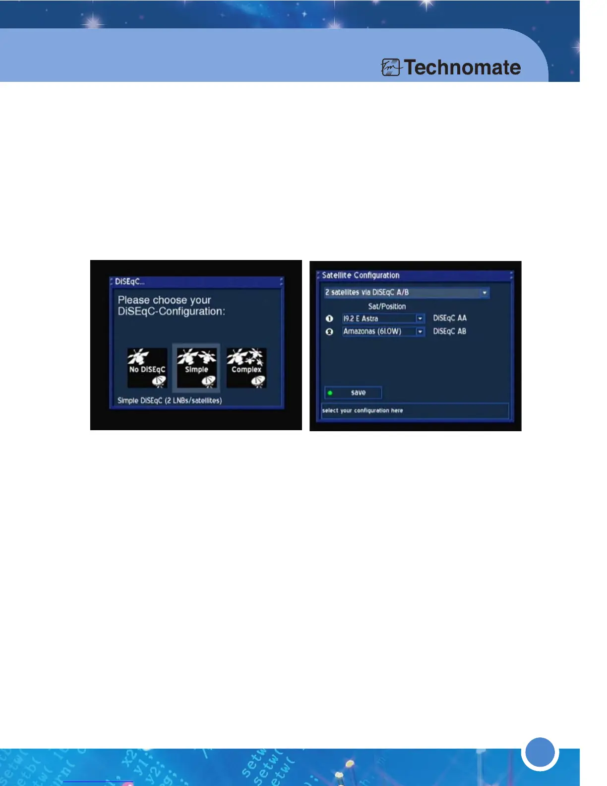 2.If you are using a 4-Way DiSEqC switch, go to dropdown list at the top of the menu