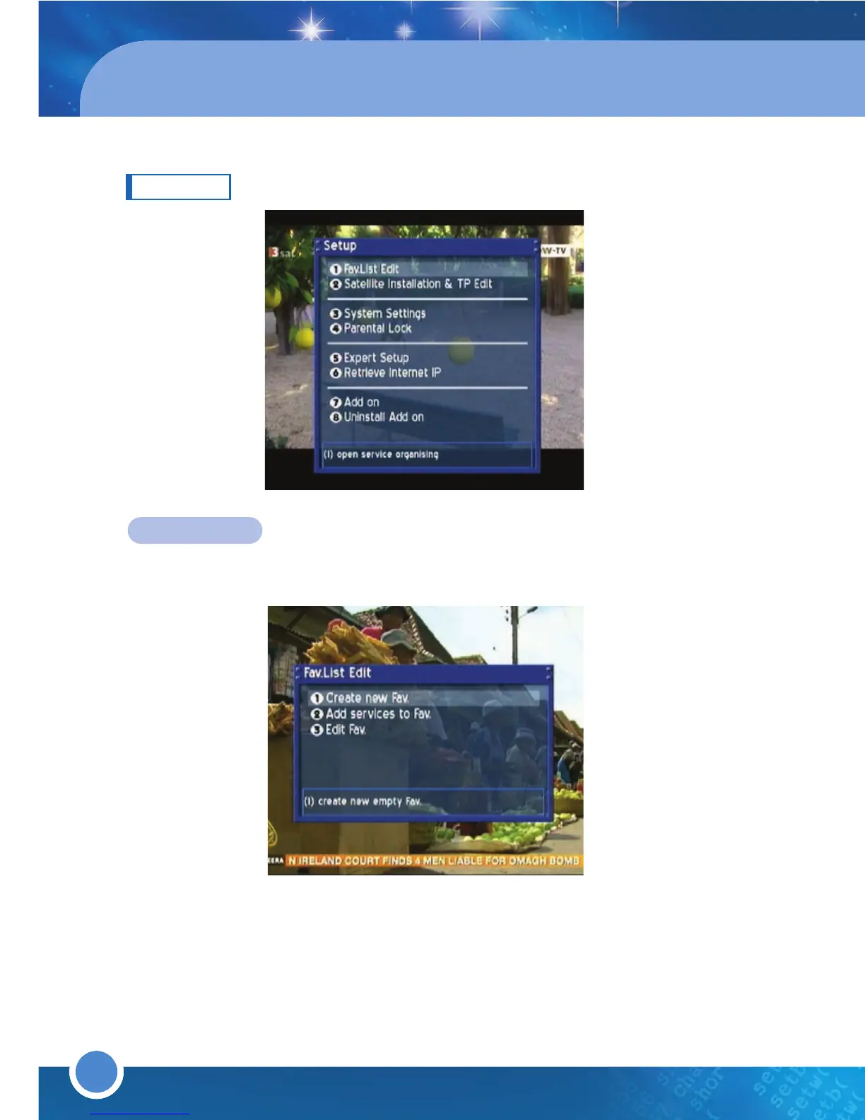 3.3 Menus (6)Setup (1) Fav.List Edit” for