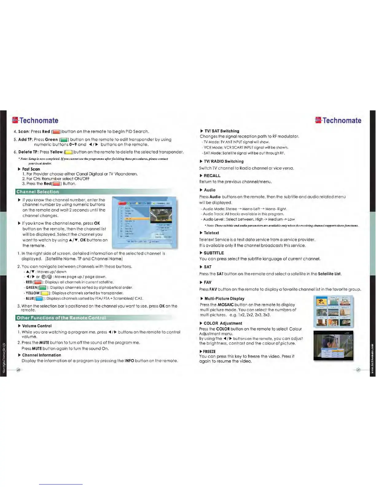 Technomate TM-5402 HD - Delete Channels; Add Channels; EPG (Electronic Programme Guide); Timer