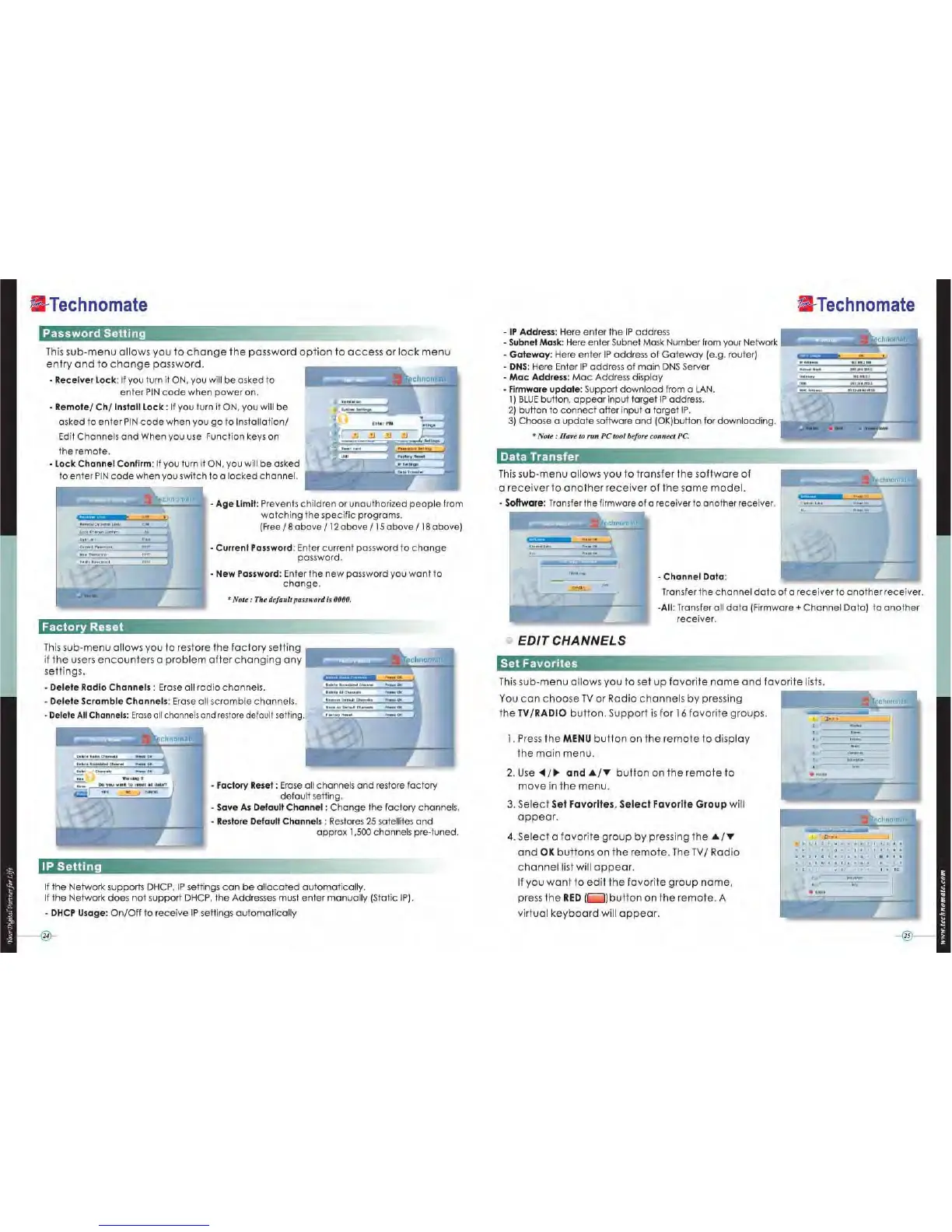 Technomate TM-5402 HD - EDIT CHANNELS; Set Favorites; Rename CH;Edit PIDs; Move Channels