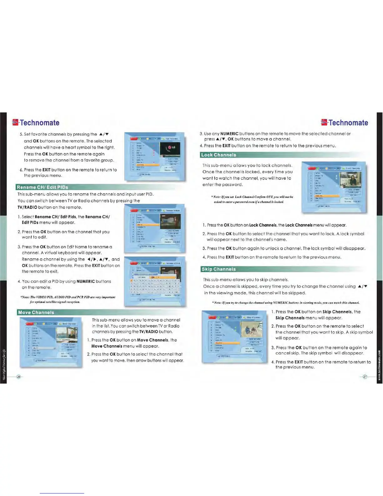 Technomate TM-5402 HD - Lock Channels; Skip Channels