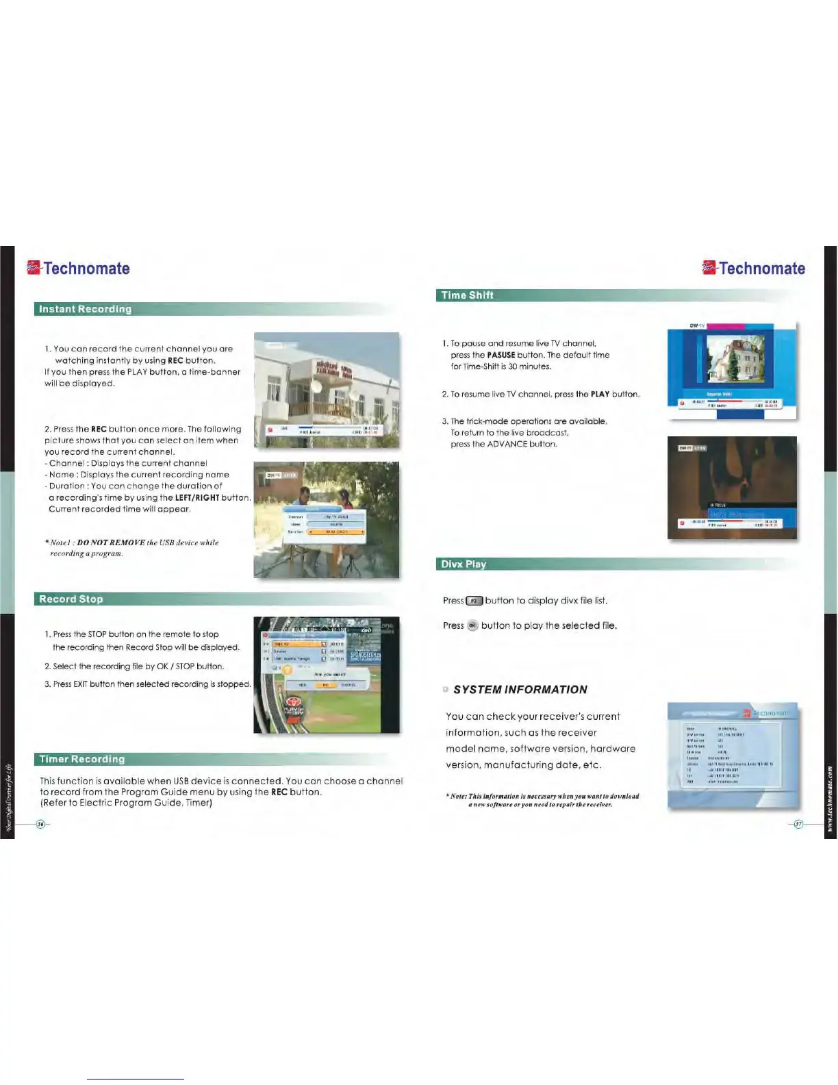 Technomate TM-5402 HD - Instant Recording; Record Stop; Time Shift; DIVX Play