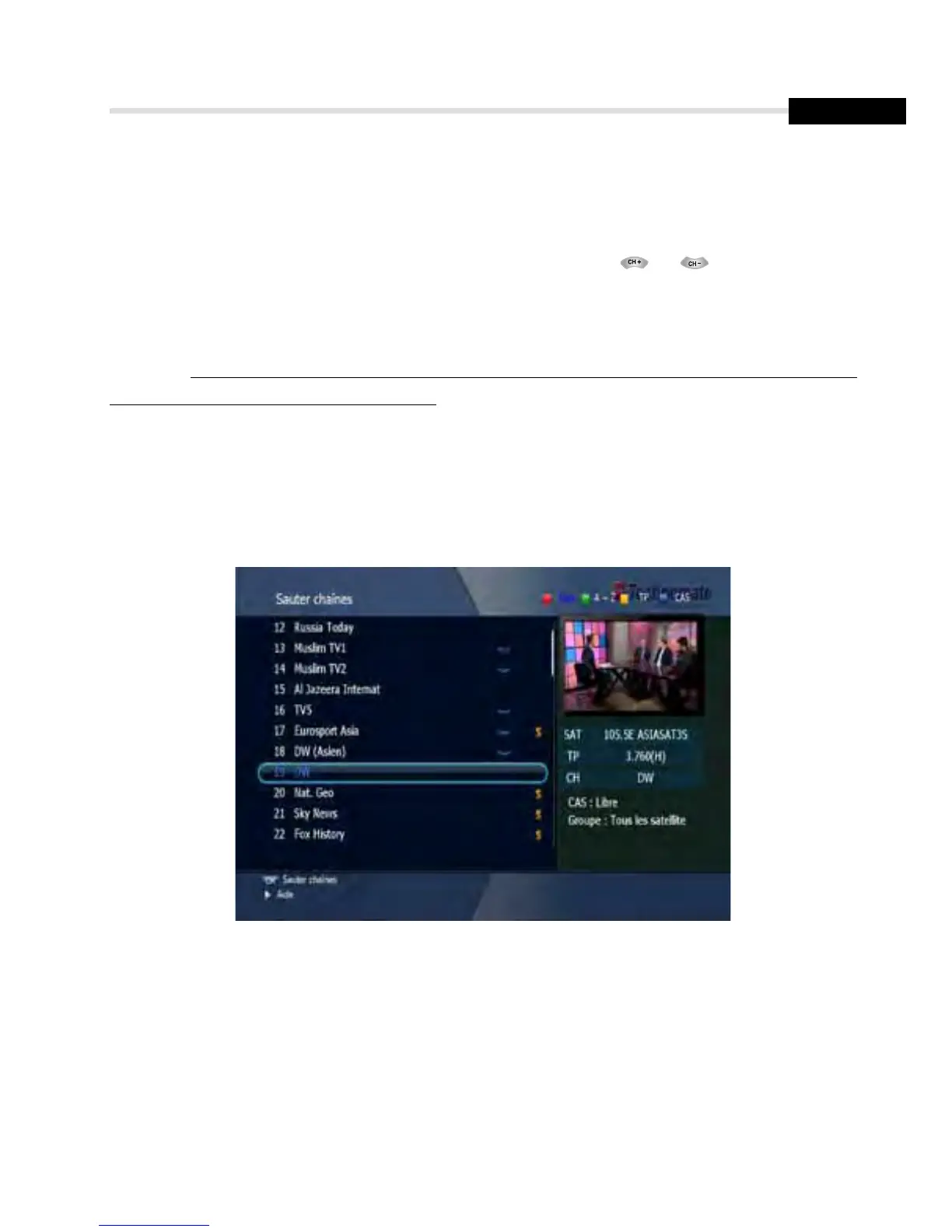✽ NOTE: Vous pouvez accéder à une chaîne « sautée » si vous introduisez son numéro avec les