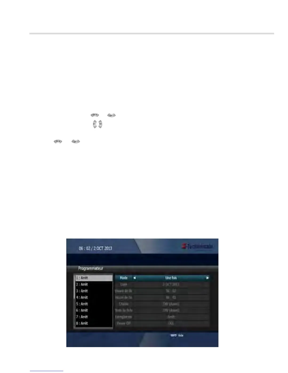 ▪ Eteindre: Sélectionner cette option si vous voulez que le récepteur s’éteigne après la fin de