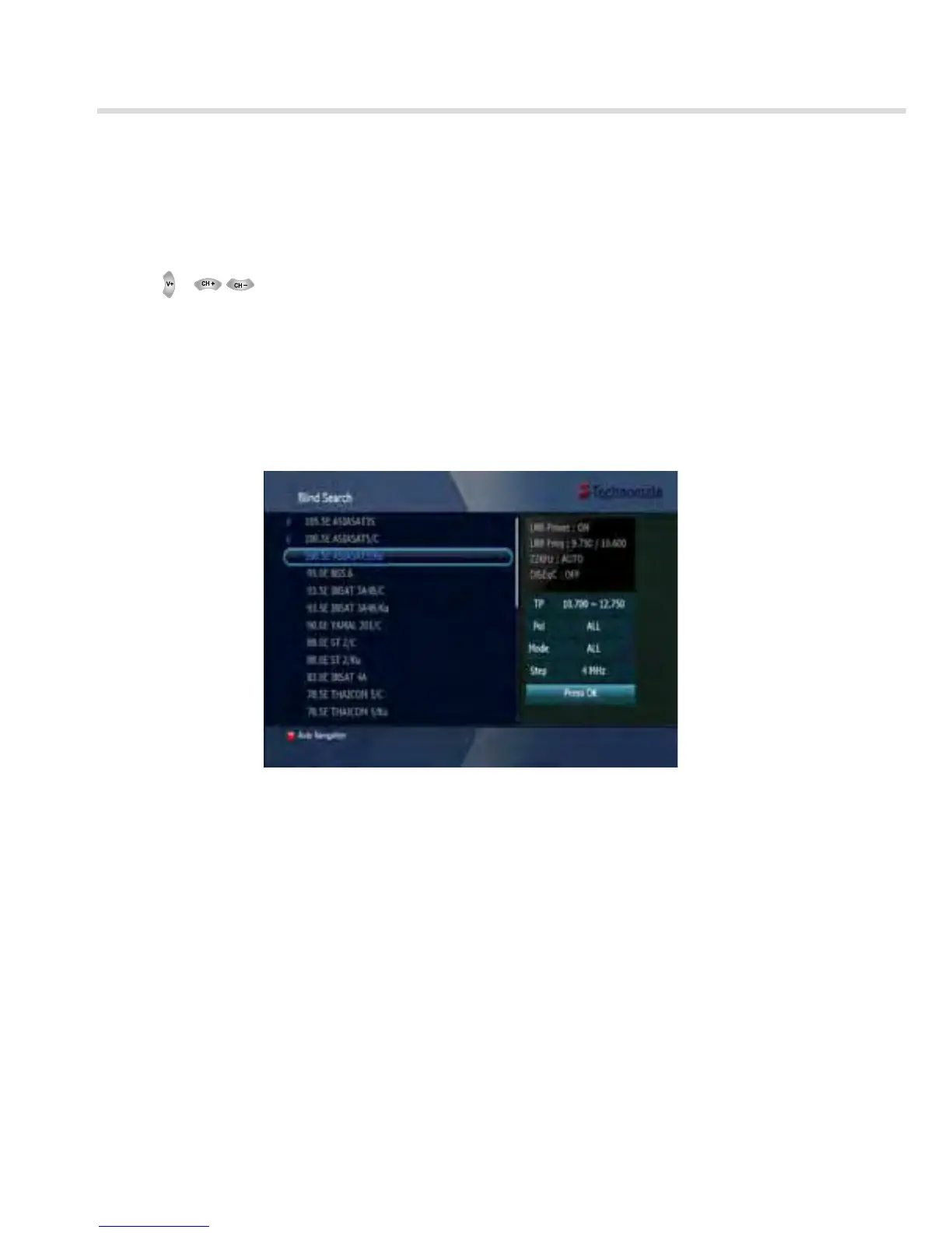 1. Select the satellites you want to search by pressing the OK button on the remote.