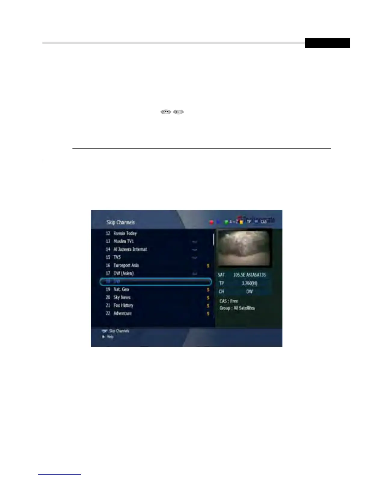 This submenu allows you to skip channels. Once a channel is set to be skipped, it will be