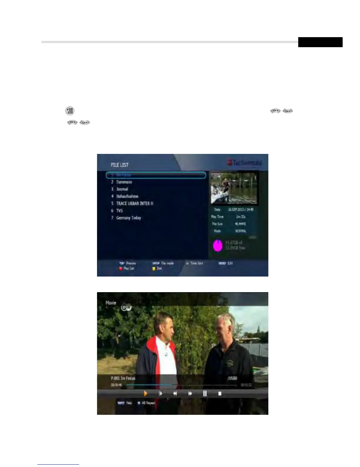 1. Press to show the file list. Select the file you want to play back by using , OK.