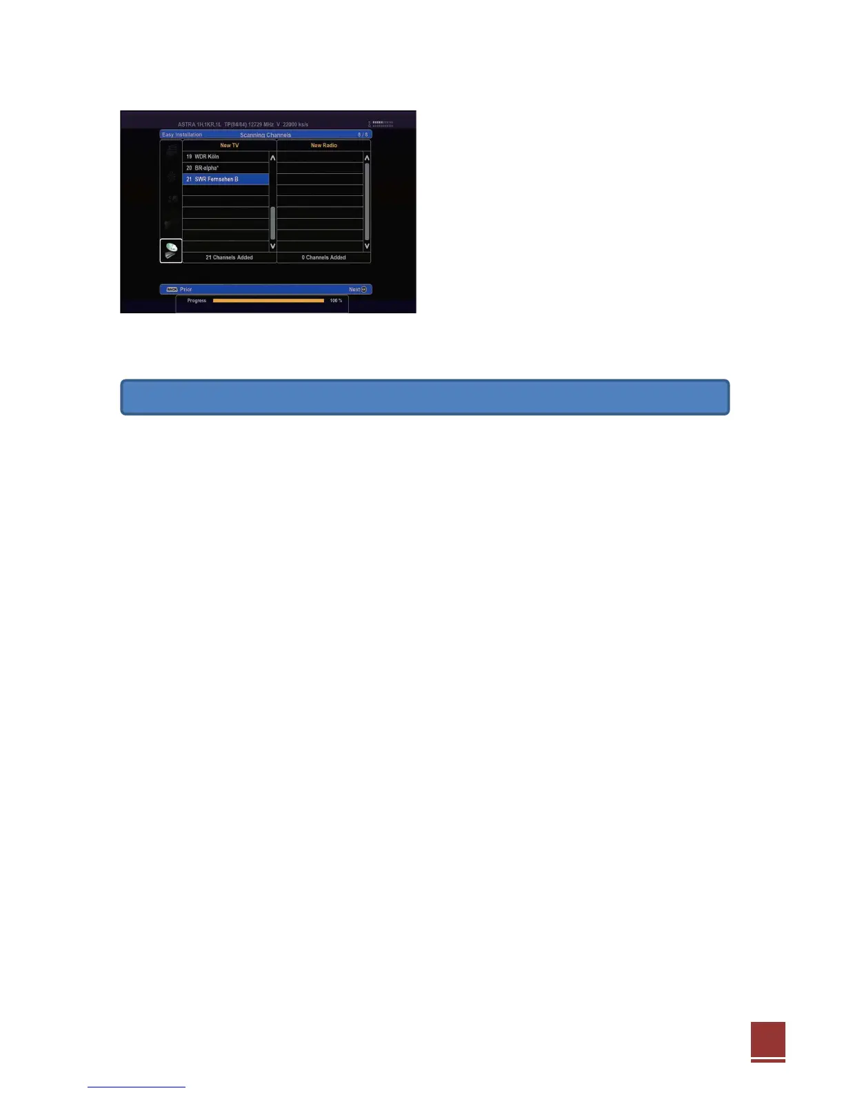 and show TV and radio channels found with