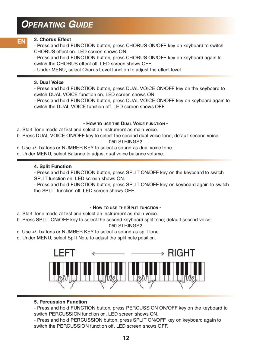 - Press and hold PERCUSSION button, press SPLIT ON/OFF key on keyboard again to