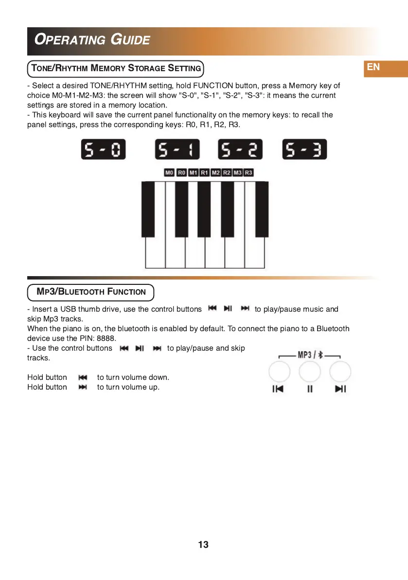 - Select a desired TONE/RHYTHM setting, hold FUNCTION button, press a Memory key of