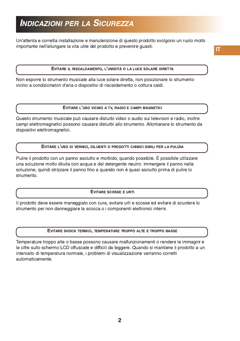 Questo strumento musicale può causare disturbi video o audio sui televisori e radio, inoltre