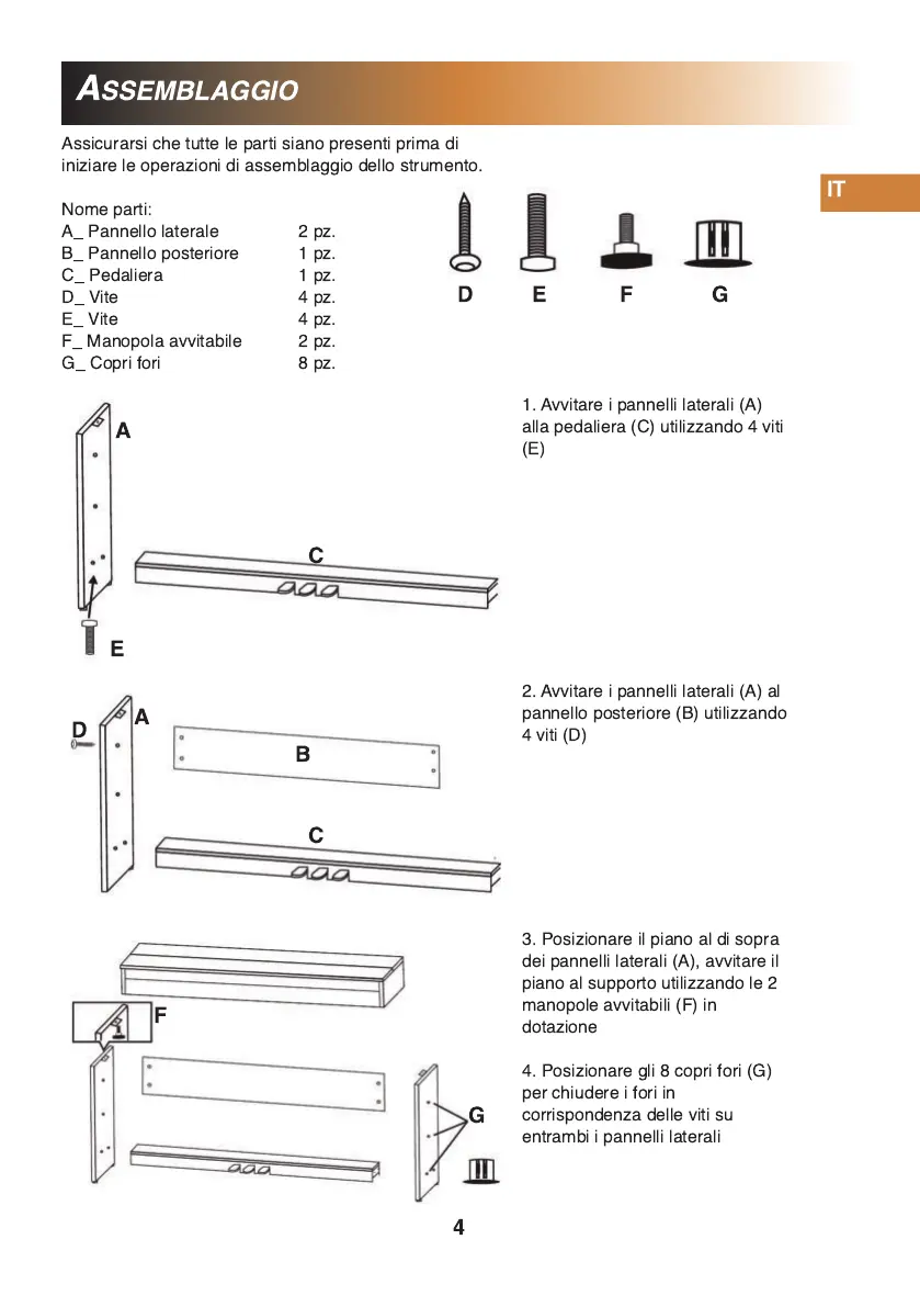 1 . Avvitare i pannelli laterali (A)