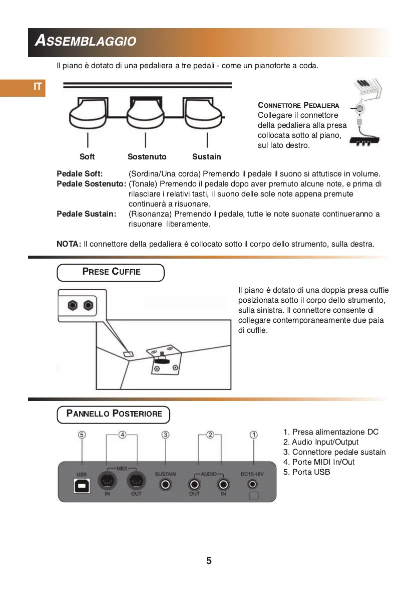 Il connettore della pedaliera è collocato sotto il corpo dello strumento, sulla destra.