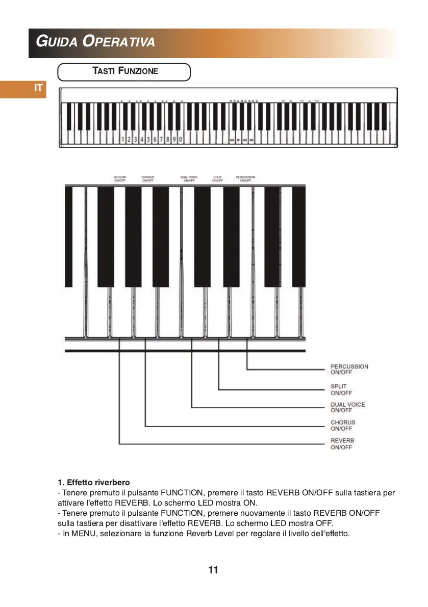 - Tenere premuto il pulsante FUNCTION, premere il tasto REVERB ON/OFF sulla tastiera per