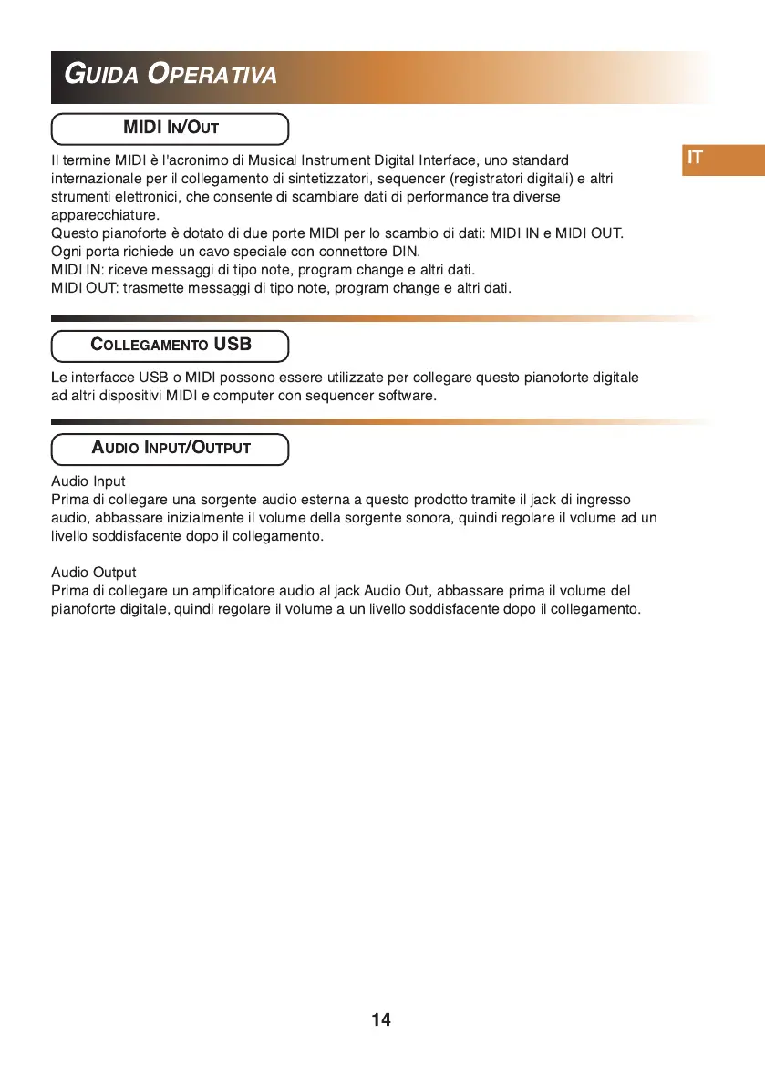 MIDI IN: riceve messaggi di tipo note, program change e altri dati.