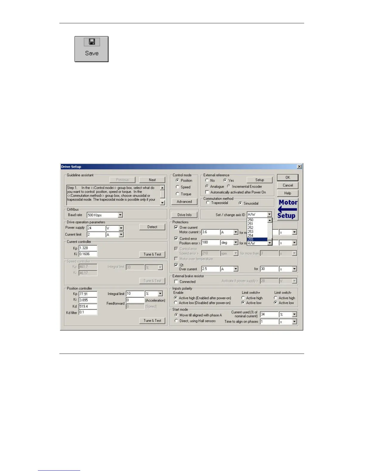 4.3. Changing the drive Axis ID