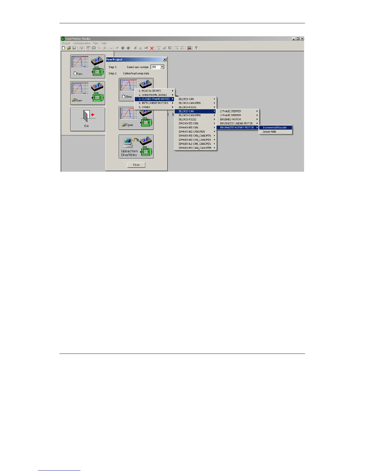 Click on your selection. EasyMotion Studio opens the Project window where on the left side you
